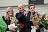 Kulturminister Anette Trettebergstuen (til høyre) sammen med finansminister Trygve Slagsvold Vedum og justisminister Emilie Enger Mehl på Slottsplassen etter den nye regjeringens første statsråd på slottet.